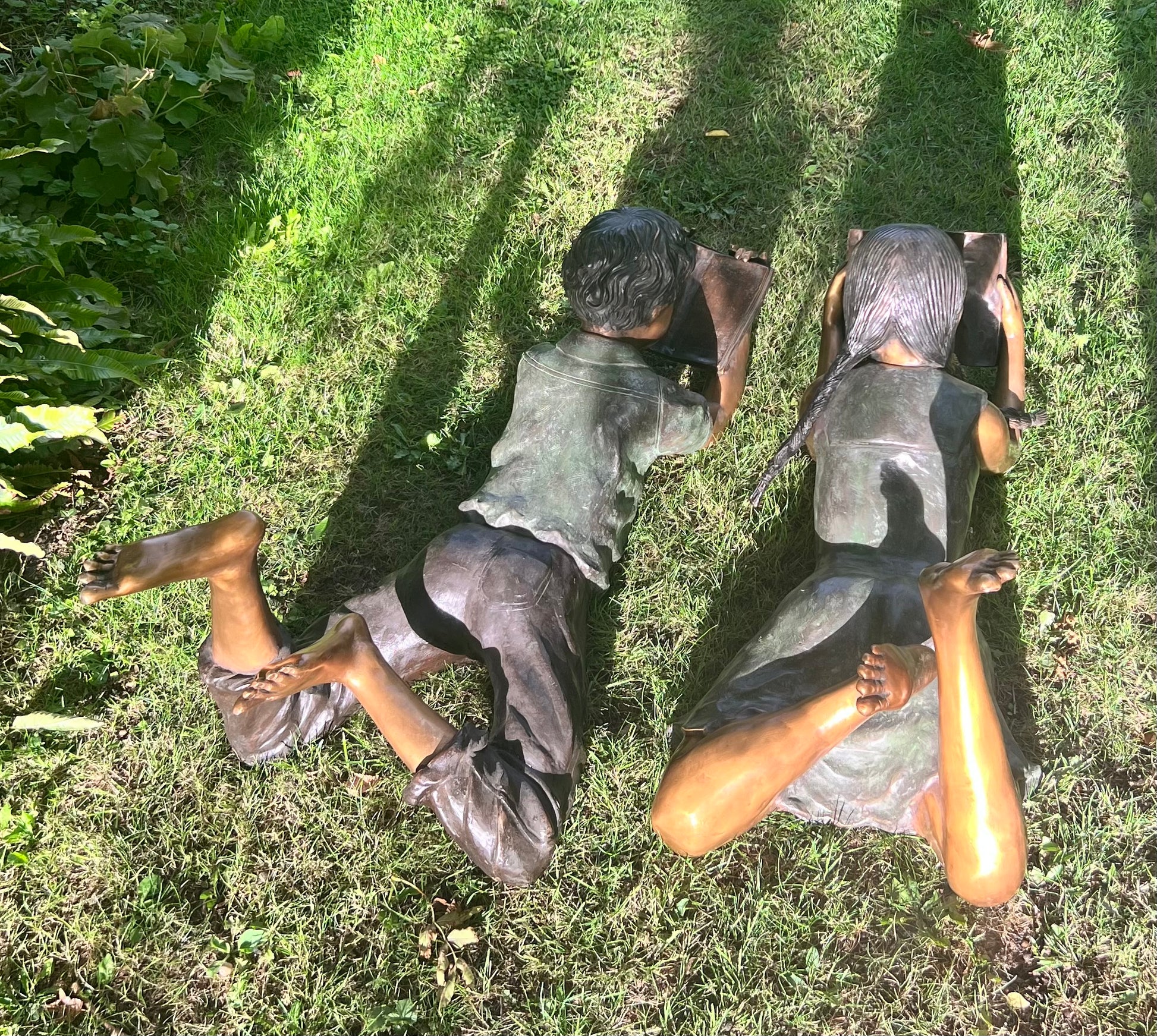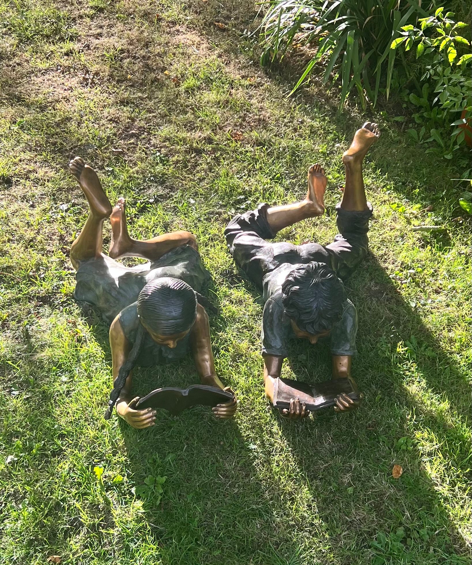 Each sculpture is expertly hand-made using the traditional lost wax method, ensuring exceptional detail and authenticity. From the children's absorbed expressions to the delicate rendering of their clothing and books, every element has been meticulously crafted.Sold as a Pair